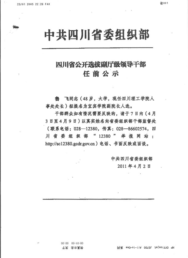 四川省公开选拔副厅级领导干部任前公示