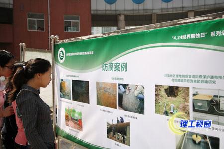 4月25日上午,副院长王成端以及科技处、学生处、材化学院领导一起参观了展览。在展览期间,许多老师和学生前来参观和咨询腐蚀方面的相关知识。