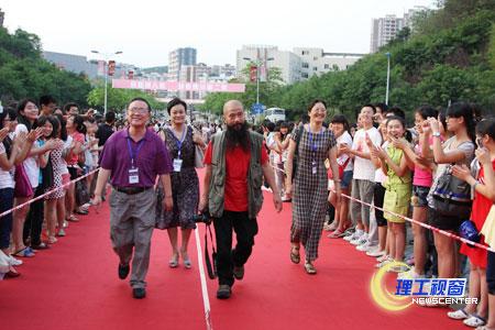 7点20分左右,著名诗人于坚、张新泉、曹纪祖、雨田及来自成都、内江、宜宾、资阳、泸州、眉山、阿坝和自贡的诗人、作家200余人在喜庆的乐曲和现场热烈的欢呼声中走过红地毯大道,纷纷在签名墙上写下自己的个性签名。