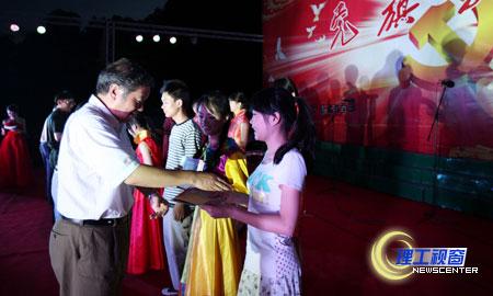整场晚会以合唱和舞蹈贯穿始终。《燃烧的火焰》舞起了先辈们用他们心中反抗压迫和剥削的怒吼,《东方红—走向复兴》唱出了全国人民在百年压迫,百年屈辱,百年反抗后的那一声声兴奋的呼喊和热情的唱颂。《春天的故事》道出了我们在改革开放所带来的巨变中深深的幸福和感恩。《天路》颂出了全民族人民对党为夺取全面建设小康社会新胜利而不懈努力的讴歌和祝愿。在晚会上,党委书记游建军,副院长龚敏等为黄岭校区2011年“黄岭之星”和“黄岭十佳学子”颁奖,表彰和鼓励他们的突出表现,同时,也激励理工学子继承党的优良传统,铭记“勤奋求实、艰苦奋斗、无私奉献、校兴我荣”的黄岭精神,为自我价值的实现,为学校的荣誉,为党和国家的建设而努力奋斗。