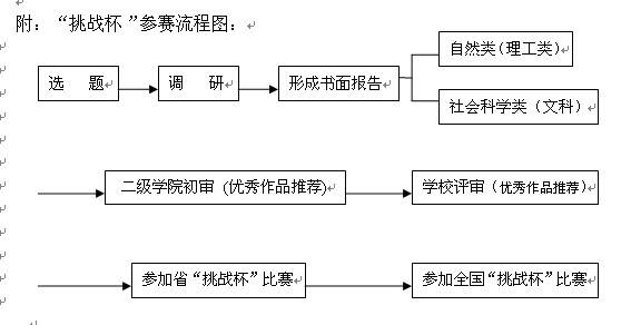 为进一步贯彻落实《中共中央国务院关于进一步加强和改进大学生思想政治教育的意见》,鼓励我校大学生参与科技活动,推动学生课外学术科技活动的蓬勃发展,经学校研究,决定组织开展2012年“挑战杯”大学生课外学术科技作品竞赛及创业设计大赛,现将有关事宜通知如下: