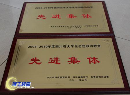 为进一步激励高校及各部门更加重视和支持大学生思想政治教育工作,激发大学生思想政治教育工作者的积极性和创造性,推动全省大学生思想政治教育工作再上新台阶,中共四川省委宣传部、四川省教育厅、共青团四川省委联合开展了2008-2010年度大学生思想政治教育工作先进集体和先进工作者评选活动。我校学生工作部、基础教学部被评为“2008-2010年度大学生思想政治教育工作先进集体”;政治学院教师范志轩被评为“2008-2010年度大学生思想政治教育工作先进工作者”;机械工程学院教师钟晓锋、材料与化学工程学院教师刘科财、艺术学院教师唐金文被评为“2008-2010年度高校优秀辅导员”。