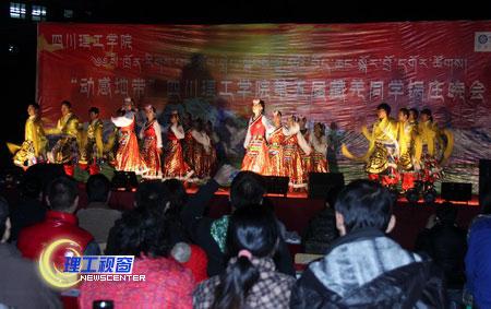 12月3日晚,“四川理工学院第五届藏羌同学锅庄晚会”在汇北校区广场激情上演。学校统战部、学工部、团委等有关领导、老师和近千余名藏、羌、汉族同学在欢快的音乐声中,手牵着手,肩并着肩,一起跳起了锅庄,大家热情高涨,体验着少数民族节日的快乐。