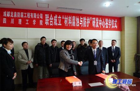 为加强企业合作,走“产学研”合作的创新之路,强化科技合作、成果转化和人才培养,3月5日,学校与成都龙泉防腐工程有限公司联合成立“材料腐蚀与防护”研发中心的签字仪式暨教学实习基地的授牌仪式在成都龙泉举行。副院长龚敏以及科技处、教务处、材化学院等部门的相关负责人出席签字仪式。