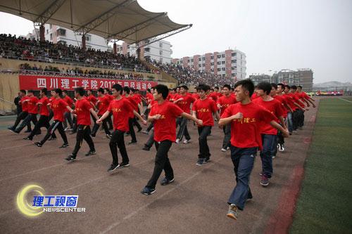 团体操经过精心策划和参与者的艰苦排练,精彩的表演博得了全场喝彩迭起,欢声雷动。之后,党委书记游建军宣布:四川理工学院2012年田径运动会开始!各项目投入了紧张的竞赛,将在为期两天半的时间内进行男女学生组(普通和特长两类)和教工组39个项目的激烈角逐。