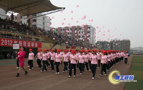 4月11日下午,我校2012年田径运动会在黄岭校区和汇东校区隆重举行。学校党政领导游建军、曾黄麟、唐健禾、李开世、龚 敏、刘 康、蔡乐才、王成端及校体育运动委员会全体成员出席了开幕式。伴随着雄壮激越的运动员进行曲,仪仗队,各二级学院、各党总支运动员代表方队,身着整齐服装,迈着铿锵有力的步伐从主席台走过,展示了我校师生英姿飒爽、精神抖擞、勇于开拓的精神风貌。