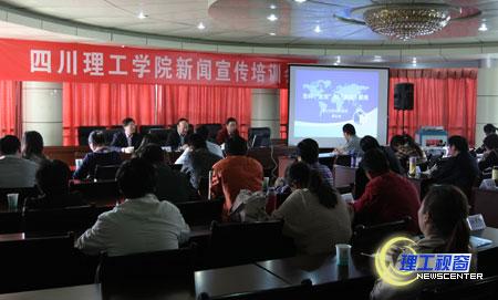 4月18日,我校在汇东校区行政楼召开新闻宣传培训会,特邀原自贡市委宣传部副部长、调研员傅仕彬作新闻培训,傅仕彬就《怎样“发现”和“表现”新闻》为大家作了一场深入浅出的报告。培训会由党委宣传部部长支果主持。党委副书记唐健禾,宣传部,各二级学院、相关职能部门宣传工作负责人、通讯员及大学生记者团学生代表参加了培训会。