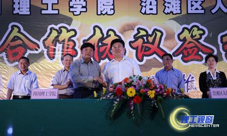 院长曾黄麟,区委副书记、区长邹天才共同签署了《四川理工学院与沿滩区人民政府战略合作协议》。协议将本着“优势互补、互惠互利、务实高效、共同发展”的原则,充分发挥沿滩区的资源优势、产业优势和我校的科研优势、人才优势,积极推动双方科技合作、人才交流和培养等工作,促进科技成果转化和地方经济社会发展。