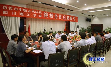 6月19日下午,我校与自贡市中级人民法院主题为“卓越法律人才培养基地”的共建合作启动仪式在自贡中院综合会议室隆重举行。这是认真贯彻教育部、中央政法委《关于实施卓越法律人才教育培养计划的若干意见》(教高〔2011〕10号)精神的切实举措。自贡市委常委、政法委书记杨家禄;我校党委书记游建军、院长曾黄麟、副院长龚敏、副院长蔡乐才;自贡市中级人民法院院长马泽波、副院长黄晓春、副院长王剑波、中院机关党委书记黄刚等出席仪式。仪式由中院副院长黄晓春主持。