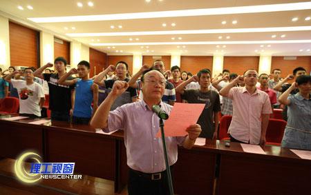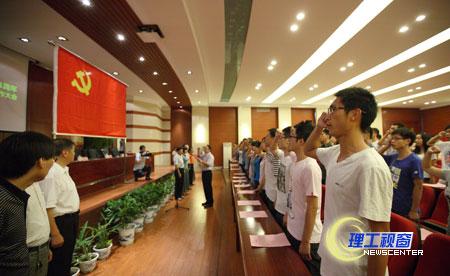 党委书记游建军作重要讲话。他回顾了党的奋斗历程,缅怀了党的丰功伟绩,总结了过去一年学校在党委、行政带领下,全体师生员工开拓进取,克难制胜取得了丰硕成果。他强调,学校组织新党员入党宣誓,既是教育新党员,也是要让全体党员回顾入党时的庄严承诺和坚定决心,以饱满的热情发挥共产党员的先进性,永葆共产党员的政治本色,为党的事业奋斗终身。同时,游建军还就我校基层组织建设工作进行了总结,他指出,今年是中央确定的基层组织建设年,学校结合实际,紧紧围绕“强组织、增活力,创先争优,坚定不移地继续推进四川理工大学建设”这一主题,突出“抓书记、强班子,抓服务、强作用,抓质量、强队伍,抓落实、强制度,抓责任、强保障,深入推进基层组织建设”,全面完成了基层党组织现状调查摸底、分类定级阶段性任务。目前,我校基层组织建设年已进入整改提高、晋位升级的关键阶段,各级党组织要以更高的标准、更严的要求、更实的作风把基层组织建设年抓实抓好、抓出成效,努力实现基层党组织全面晋位升级。他希望,全体党员牢记党的宗旨,进一步增强工作的责任感和使命感,用共产党员与时俱进、奋发有为的创新实干精神,以饱满的政治热情和艰苦奋斗、求真务实的作风,深入开展创先争优活动,深入开展基层组织年活动,锲而不舍,矢志不渝,为建设有特色、高水平的四川理工大学做出更新、更大的贡献,以优异成绩迎接党的十八大的胜利召开。