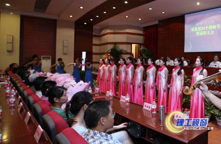 来自艺术学院的师生们为表彰大会献上了小合唱《每当我走过老师窗前》、女声双二重唱《祖国万岁》,深切表达了对老师们的祝福和崇高敬意。