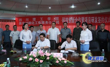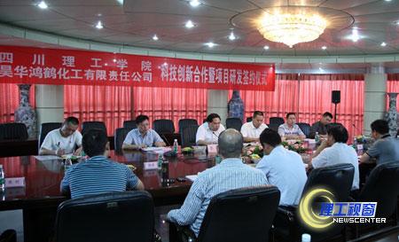 9月13日下午,我校与昊华鸿鹤化工有限责任公司科技创新合作暨项目研发签字仪式在我校举行。校领导曾黄麟、蔡乐才分别与昊华鸿鹤公司董事长、总经理谢学端,副总经理、总工程师郭戈签署了《四川理工学院 昊华鸿鹤化工有限责任公司 战略合作协议》、《聚苯硫醚生产中废液的回收处理》和《甲烷氯化物、PCE等精细产品的应用开发》。
