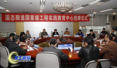教育部评估中心主任季平代表教育部授牌。随后,四川理工学院党委书记游建军对实践教育中心的建设等问题发表讲话。他表示,四川理工学院将与泸州老窖一道,努力把固态酿造国家级工程实践教育中心建设好,使之成为高素质应用型工程技术人才培养的重要基地。