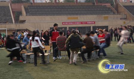 3月6日下午,学校田径运动场人头攒动、笑声不断。为了庆祝“三八”国际妇女节,向工作在学校各条战线的女职工以及退休女职工表示节日的祝贺和慰问,同时丰富学校工会组织活动的内容,学校工会在田径运动场为大家精心准备了一场趣味比赛——抢凳子游戏。