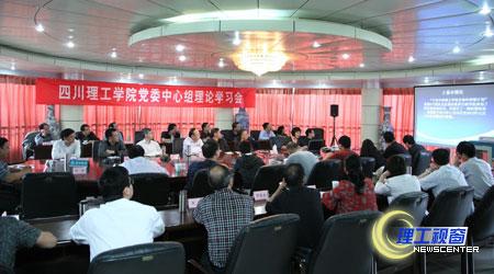 5月7日下午,学校在汇东校区第四会议室举行党委中心组理论学习,副院长龚敏、肖兴政分别作考察和学习报告。学校党委委员、纪委委员、党群部门主要负责人、各党总支书记参加学习。