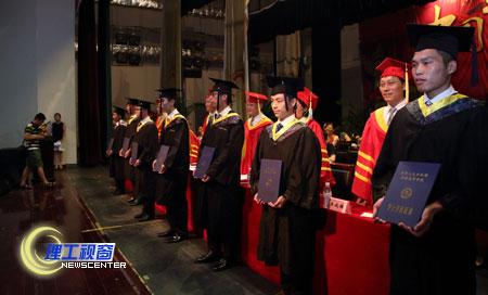 在欢快的乐曲中,学校党政领导为获得表彰的毕业生代表颁发了获奖证书,并为身着学士服的毕业生代表授予了学位证书,并一一为他们扶流苏。