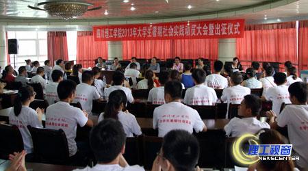 为进一步贯彻落实党中央向青年学生发出的“向实践学习、向人民群众学习”的号召,充分发挥社会实践作为加强和改进大学生思想政治教育重要途径的优势,引导广大青年学生在实践中学党史、知党情,进一步坚定跟党走中国特色社会主义道路的理想信念,努力为创建四川理工大学做出积极贡献,7月4日下午3点,我校2013年大学生暑期社会实践动员大会暨出征仪式在行政楼五楼会议室召开。