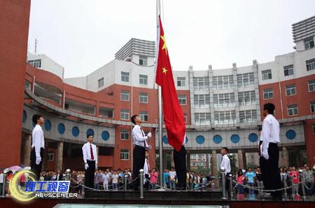 9月2日清晨7:30,天空飘着丝丝细雨,学校新学期升国旗仪式在汇东校区喷泉广场隆重举行。材化学院、计算机学院、机械学院、生工学院和外语学院共计1000余名的学生代表、辅导员教师代表、党委宣传部工作同志参加了升国旗仪式。