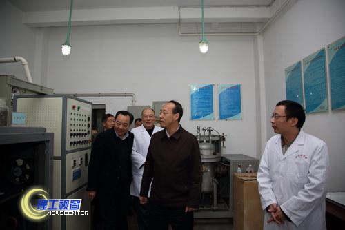 在参观材料腐蚀与防护省级重点实验室和微波裂解实验室时,调研组听取了实验人员对于利用微波裂解技术对垃圾进行处理的介绍,材料与化学工程学院副院长陈建介绍了腐蚀与防护省级重点实验室与地方合作开展的环保项目,吴靖平对此给予了充分肯定。他强调,这些项目非常具有经济效益、社会效益和生态效益,一定要坚持做、一定要做好。