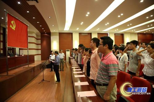 教师新党员代表江治杰、学生新党员代表周钟先后在会上发言。