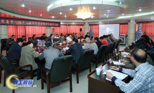 10月28日下午2:30,学校在汇东校区行政中心第4会议室举行党委中心组理论学习会,专题学习十八届四中全会精神。党政领导游建军、汪明义、唐健禾、李开世、龚敏、王成端,党委委员、纪委委员、党群部门主要负责人、各党总支书记参加了学习。