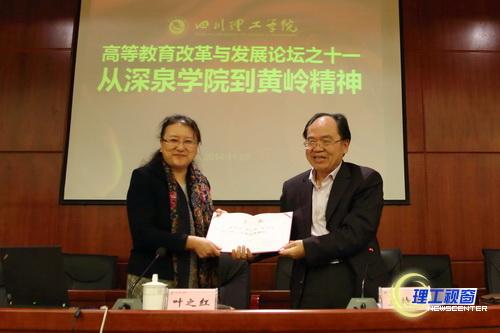 叶之红说,四川理工学院是一所比较特殊的高校,她没想到川南地区还有一所能与美国深泉学院相媲美的学校;学校的发展之路走得扎实,始终坚持应用型的方向,“用”永远是我们这类高校的看家本领;学校在“黄岭精神”的感召下,将大学文化、办学历史渗透到学校的发展中,使之成为师生员工得以传承的宝贵财富。