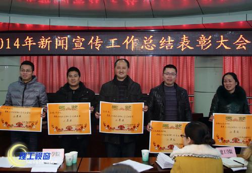 经过评比,荣获2014年新闻宣传先进集体一等奖的是黄岭校区管委会和建工学院,荣获二等奖的是人文学院、生工学院、学生工作部(处);荣获三等奖的是法学院、材化学院、经管学院、机械学院、化学与制药学院。在主席台就坐的领导在会上为获奖单位颁发了奖状。