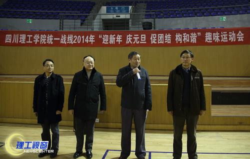 在2015年新年到来之际,为丰富统战文化活动,加强统一战线的联谊,促进学习交流,凝聚力量,构建和谐校园,12月26日下午,学校在汇东校区体育馆举办“迎新年,庆元旦,促团结,构和谐”趣味运动会。校领导游建军、唐健禾、刘康、王成端、肖兴政、学校各民主党派成员、无党派代表、侨联成员、统战干部共120余人参加了本次趣味运动会。
