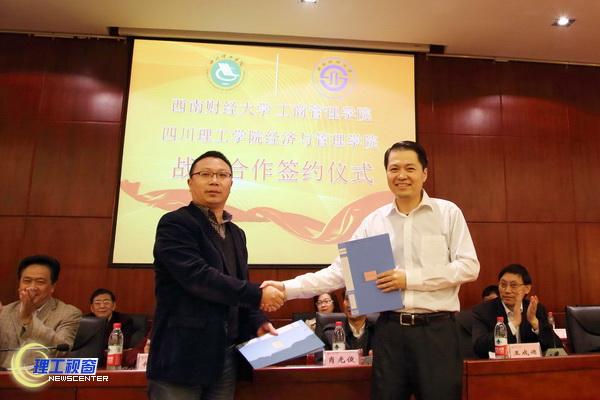 出席并参加签约仪式的还有自贡市政协副主席、市委统战部部长肖光俊,民建成都市委副主委罗济沙、蔡小于,自贡民建市委及相关单位、企业、部门负责人,西南财大专家教授与我校统战部负责人、经管学院负责人。