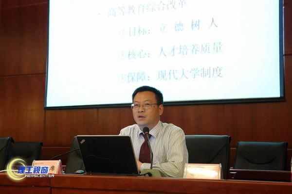 张健以《地方高校发展中的一些思考与启示》为题作报告。报告围绕如何使学生获得尊重、教师获得尊严、学校获得尊敬的目标,阐述了自己在思考和做法。