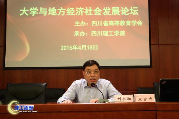 4月18日下午,由四川省高等教育学会主办,我校承办的“大学与地方经济社会发展论坛——大学如何适应、引领经济社会发展”在汇东校区学术报告厅举行。自贡市委副书记、人民政府市长刘永湘,四川省人大常委会原副主任、省高教学会会长卢铁成,中国高等教育学会学术部主任范笑仙,西华师范大学校长张健,宜宾学院校长蔡乐才,四川传媒学院校长董孝壁,四川工程职业技术学院校长李登万,我校副校长王成端作大会专题报告。省内各兄弟院校书、及校长,自贡市发改委、教育局、科技局、旅游局、住建局、国土局部门负责人莅临大会。学校科级以上干部、教师代表参加会议。大会由四川省高教学会常务副会长唐朝纪主持。
