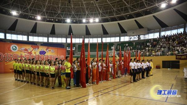 下午2:00,汇东校区体育馆内各参赛队伍依次闪亮登场。学校体育运动委员会主任、副校长王成端,各二级学院领导和职能部门负责人,各学院学生代表,研究生、留学生代表共同观看了比赛。