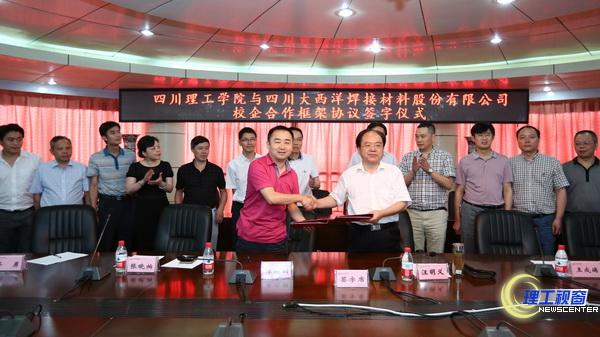 6月9日下午,我校与四川大西洋焊接材料股份有限公司校企合作签字仪式在汇东校区行政中心第四会议室举行。校长汪明义、副校长王成端,服务地方工作处、科技处、机械学院、材化学院、节能环保装备产业技术研究院负责人,四川大西洋焊接材料股份有限公司董事长李欣雨、总经理张晓柏、总工程师蒋勇等出席仪式。