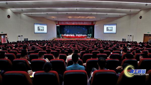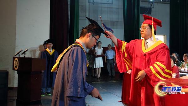 身着授位服的汪明义一一为2015届毕业生代表授学位、扶流苏。科学会堂内多次响起雷鸣般的掌声,这掌声代表了学子们对未来的憧憬,更代表了对母校依依惜别的深情和对母校美好明天的祝福。情系川理,憧憬未来,祝愿所有的毕业生在实现中国梦的生动实践中放飞青春梦想,在为人民利益的不懈奋斗中书写人生华章。