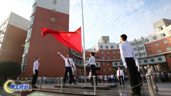 7:40分,升国旗仪式正式开始。迎着灿烂的朝霞,国旗护卫队迈着矫健整齐的步伐走向升旗台,在庄严的《义勇军进行曲》中,同学们齐唱国歌,升旗手振臂一挥,鲜艳的五星红旗冉冉升起,在同学们整齐的国歌声和严肃的注目礼中,迎风飘扬在校园上空。党委宣传部全体同志、材化学院、计算机学院、建工学院、外语学院、机械学院五个二级学院师生代表共计1500余人参加了升国旗仪式。