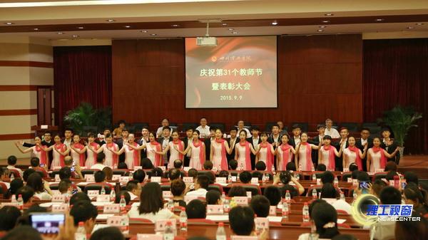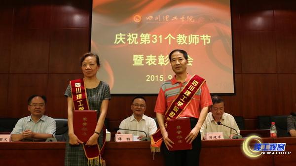春蚕到死丝方尽,蜡炬成灰泪始干。在第31个教师节到来之际,学校在汇东校区学术报告厅隆重举行庆祝表彰大会。对一年来在教学、科研及管理工作等方面做出突出成绩的先进个人进行表彰。自贡市委副书记谭豹、学校党政领导游建军、汪明义、李开世、龚敏、刘康出席表彰会。党委书记游建军主持会议。