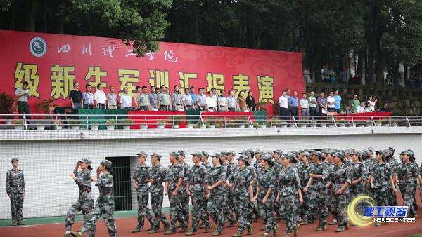 庄严的迎军旗仪式拉开了黄岭校区军训汇报表演的序幕。校长汪明义,党委副书记李开世,自贡军分区党委常委、政治部主任郑智辉大校,自贡市自流井区人民武装部部长、军训团团长何友余上校,军训领导小组成员、各二级学院党总支书记、副书记出席大会。李开世主持会议并宣布四川理工学院2015级新生军训汇报表演开始。