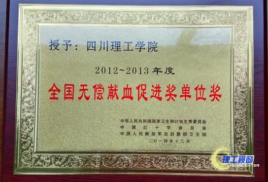 近日,经自贡市中心血站、自贡无偿献血办公室推荐,由国家卫生计生委、中国红十字会总会、中国人民解放军总后勤部卫生部授予我校“全国无偿献血促进奖单位奖”荣誉称号。