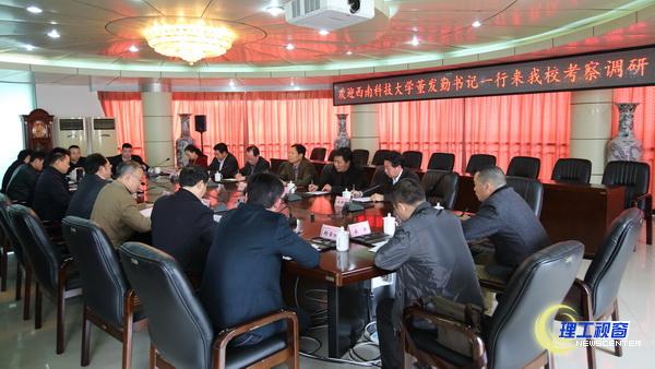 3月16日下午,西南科技大学党委副书记董发勤一行6人莅临我校考察调研。我校党委书记汪明义,副书记李开世、龚敏及相关部门负责人参加调研座谈会。校长庹先国主持会议。