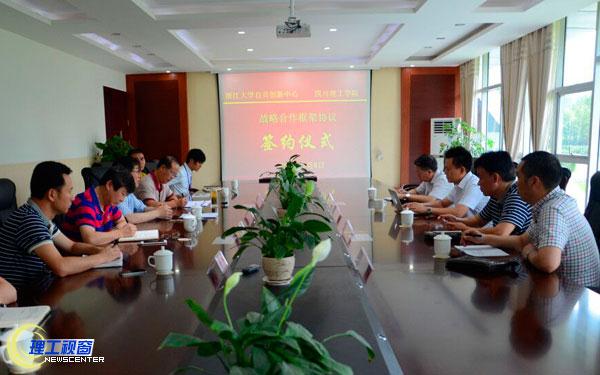 为促进四川理工学院与浙江大学自贡创新中心的合作,双方根据“平等合作、友好协商、优势互补、共同发展”的原则,建立战略合作伙伴关系。双方将根据各自学科特色和资源优势,联合建立关键共性技术创新服务平台,提升双方为自贡市及周边企业提供科技创新、技术服务的能力;结合企业需求,为相关企业培养高端技术人才。基于双方在试验设备、专业技术人才和产学研用等方面的优势,共同提升科技研发、成果转化及市场竞争力,很好地服务于自贡及川南经济社会发展。