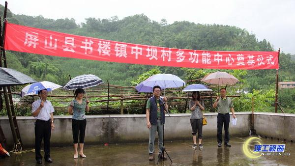 7月14日,闷热的川西南大地喜降大雨。宜宾市屏山县书楼镇中坝村山涧内一处工地上横幅鲜亮醒目,村民翘首盼望。泥泞难行的施工现场没有阻挡村民们的热情,因为由我校资助建设的多功能服务中心即将在此开工奠基。该中心建成后,将集村民超市、文化室、卫生室、电商中心、便民服务室、感恩奋进厅等功能为一体,为村民的生活、学习提供诸多便利。