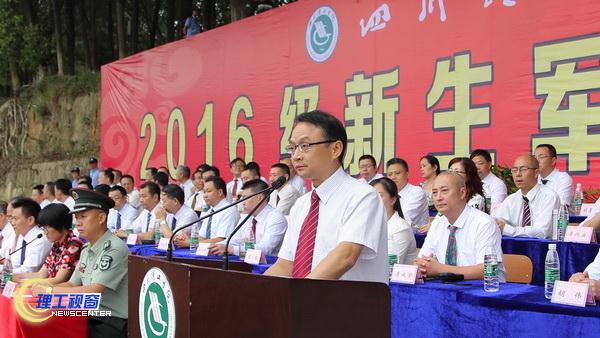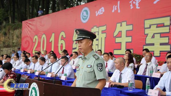党委书记汪明义下达军训命令并授军旗,校长庹先国宣布军训开始,正式拉开了2016级学生军训的帷幕。本次军训由四川省军事训练基地四川警安分基地承办,共有99名教官和管理干部参与本次军训训练。7000多名新生被编制成6个营,94个连(其中营盘校区1个营6个连),将分别在黄岭校区和营盘校区进行为期10天的军训。