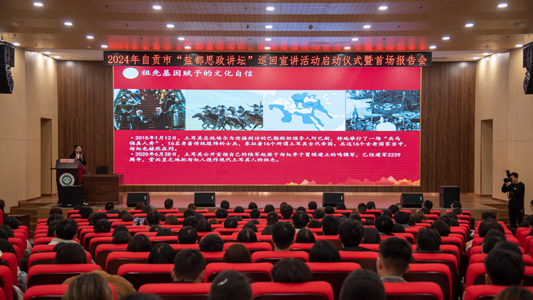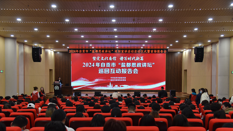 3月13日下午,2024年自贡市“盐都思政讲坛”巡回宣讲活动启动仪式暨首场报告会在我校李白河校区行政中心学术报告厅举行。自贡市委宣传部机关党委书记张忠,教育体育局副局长杨旖旎,学校党委宣传部副部长李香,高新区党群工作部、各区县委宣传部、教体局相关负责人和我校300余名师生代表聆听报告。自贡市委党校教师陈雪梅以《从文化自信看新时代的文化使命》为题作“盐都思政讲坛”首场宣讲报告。