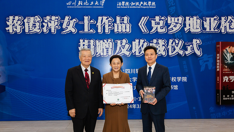 在此次活动中,李昌钰博士向我校图书馆捐赠了其夫人蒋霞萍女士著作的《克罗地亚枪声》一书,并共同为同学们签名。校长庹先国代表学校接受赠书,并为蒋霞萍女士颁发图书馆收藏证书。