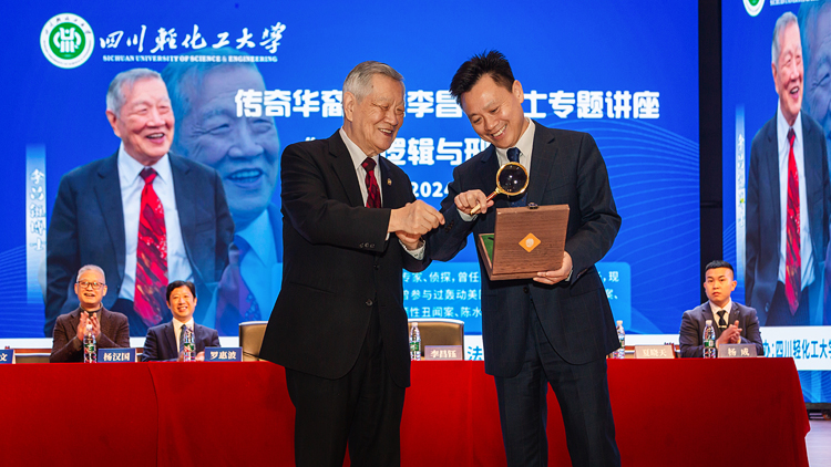 李昌钰博士将自己在工作中的重要工具放大镜馈赠我校。接过这份有着特殊意义的礼物,庹先国校长表示将一如既往带领川轻化全体师生,在科学探索的道路上探寻真理。