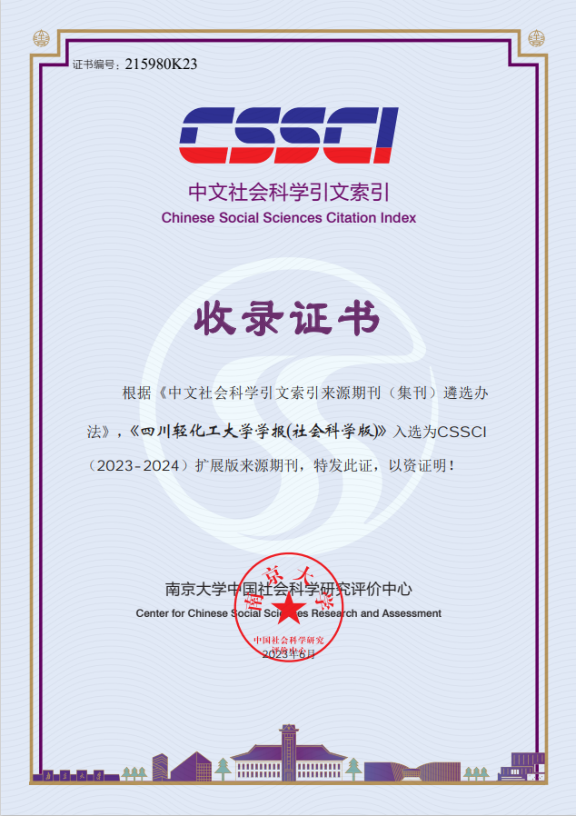 近年来,我校学报社会科学版坚持传承中华优秀传统文化,倡导厚实深入和经世致用的学风,注重产教融合和研究成果转化,深切关注世情、国情、党情等具有前瞻性、基础性、原创性研究,精心打造有分量、有深度、有普适性、有前瞻性的力作,形成了符合时代发展趋势、自身发展特点和学术发展需要的办刊理念,获得四川省哲学社会科学基金资助。因此,我校学报社会科学版脱颖而出,再次入选CSSCI扩展版来源期刊。