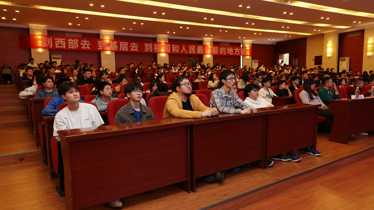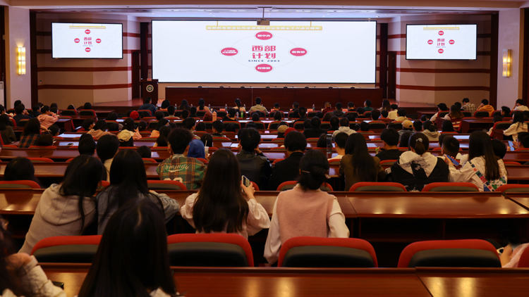 江苏师范大学第25届研究生支教团,服务于广安市前锋区的陈楠,分享了她不断提升,争“做‘经师’与‘人师’的统一者”的志愿故事。来自眉山市洪雅县洪川镇人民政府的乡村建设西部计划志愿者黄凯洋,讲述了他以初心扎根基层的经历。四川省西部计划项目办黄付兴围绕项目概况、招募条件、专项类别、报名方式、选拔标准、政策支持、资金保障等方面对西部计划项目及政策进行了全面介绍和解读,使同学们对项目有深入全面的了解。宣讲会交流互动环节,针对同学们提出的有关西部计划选拔、服务年限、编制等大家密切关心的问题,省项目办和学校项目办负责人都为现场的同学们进行了解疑答惑,让同学们坚定了投身西部计划的决心。