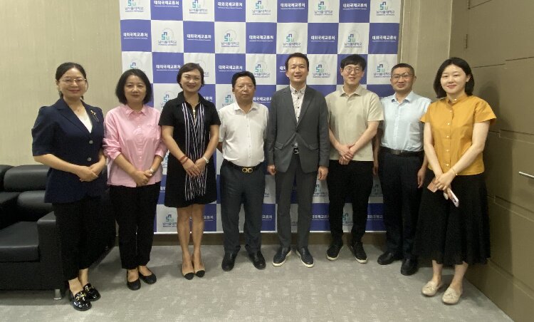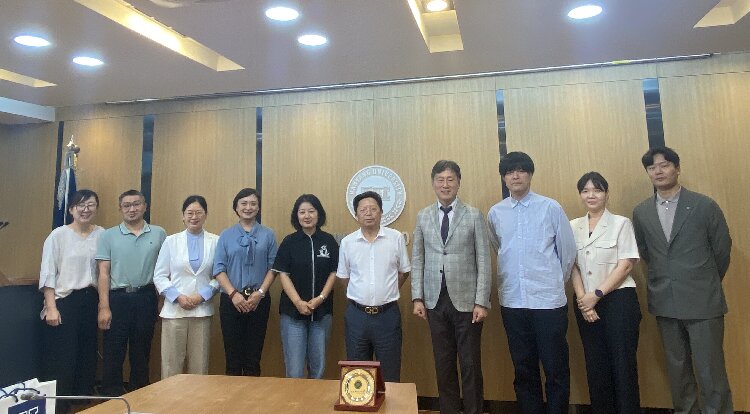 在新罗大学,新罗大学副校长金熙圭热情接待了高小林一行,对学校一行的来访表示了热烈欢迎。在会谈中,高小林总结了两校在过去几年里的合作情况,对两校开展的线上语言学习项目进行了回顾,他表示,两校合作推进顺利,在多个领域已有良好的合作基础,希望将来两校在师生互访、联合培养、共建数字教育系统等方面展开更加深入的合作。