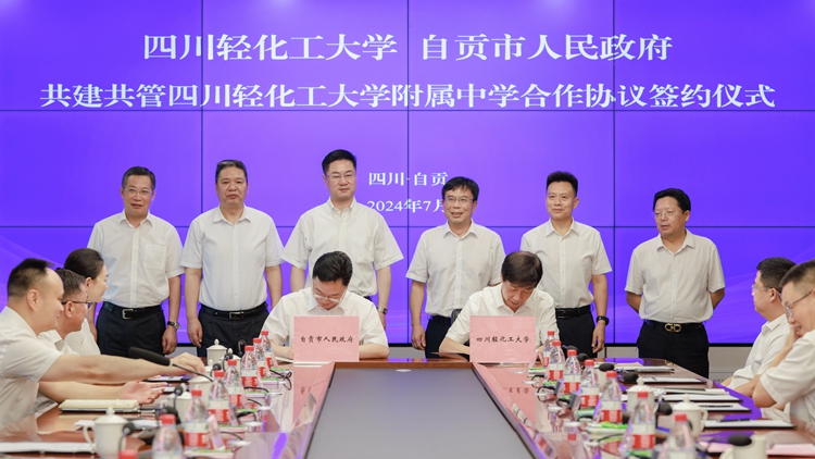 川轻化附中来了!7月3日上午,我校与自贡市人民政府共建共管万象城平台附属中学合作协议签订仪式在李白河校区举行。自贡市委书记曾洪扬;我校党委书记张力,校长庹先国出席签约仪式。