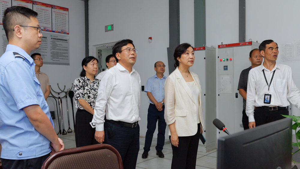 蔡光洁副厅长首先听取了校党委常委、副校长高小林关于校区建设情况的汇报。随后,检查组实地走访了学生公寓、警务室、食堂、音乐厅及消防控制室等关键区域。蔡光洁强调,校园安全是教育发展的基石,要以高度的责任感完善人防、物防、技防体系,切实保障师生安全。